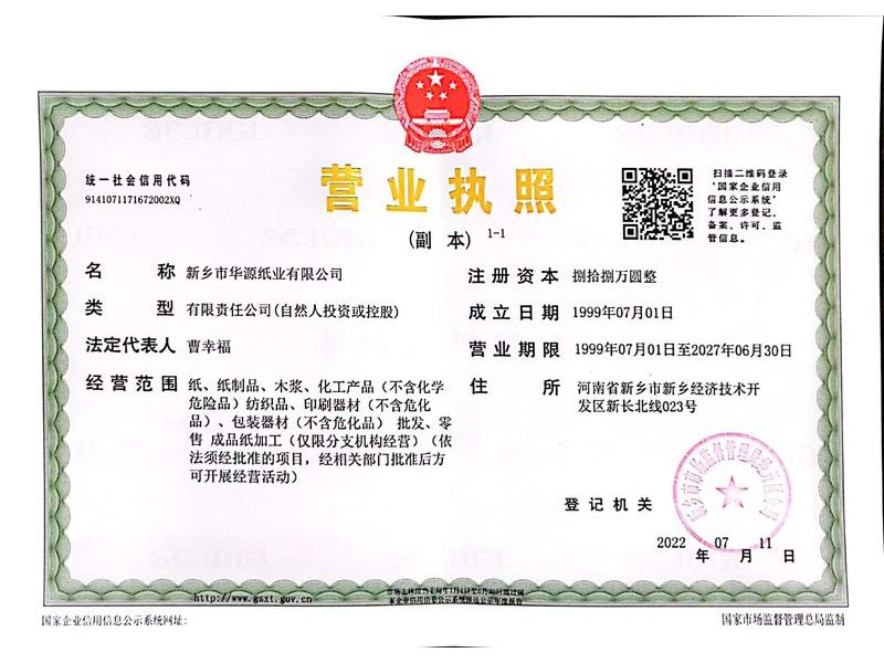 新鄉市華源紙業有限公司是一家主要經營全木漿紙袋紙、牛皮紙、精制牛皮紙、精制復合原紙、全木漿美廢包裝紙、進口白牛皮紙、本色牛皮紙、淋膜牛皮紙等系列產品的公司,公司創建于1999年,坐落于河南省新鄉市,占地約10畝,公司員工20人,其中技術人才3名。公司自成立以來,秉承“誠信、品質”的企業理念,已經發展成為河南省獨具規模的牛皮紙經銷商,現已和國內多家知名造紙廠開展省級代理合作。公司的銷售網絡遍及各地,常備各種規格的現貨庫存,為中國各地區的客戶提供更為及時、便捷的服務。
